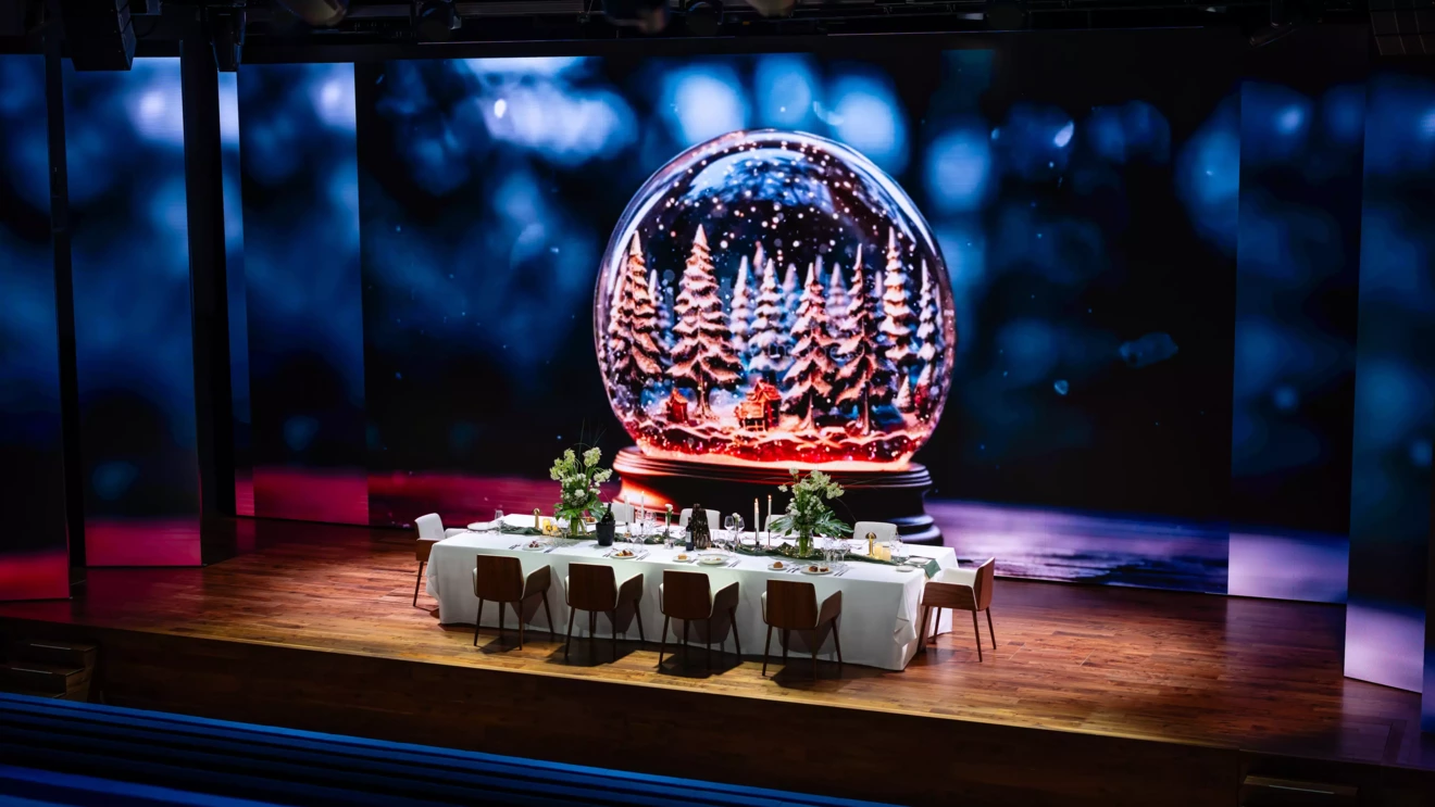 Invitate i vostri ospiti a gustare un pasto eccezionale direttamente sul palcoscenico di un auditorium immersivo, dove di solito si mettono in scena idee e innovazioni. Tra gastronomia raffinata, proiezioni visive a 270°, ambienti musicali e atmosfere a tema, ogni senso viene risvegliato per un viaggio unico. Un'esperienza teatrale esclusiva, dove i vostri ospiti diventano gli attori della serata.